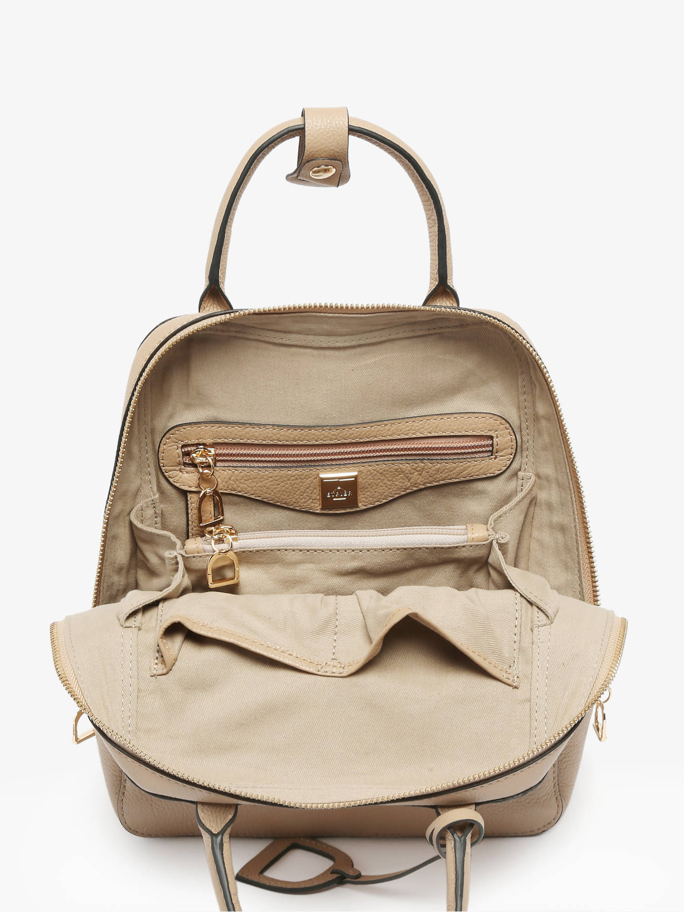 Le sac à dos ETRIER de la ligne TRADITION, emblématique de la marque, combine cuir grainé intemporel et design à la fois minimaliste et élégant, rehaussé d'un détail en forme d'étrier. Ce modèle spacieux propose un grand compartiment principal, complété par deux poches simples et deux poches zippées pour une organisation optimale.