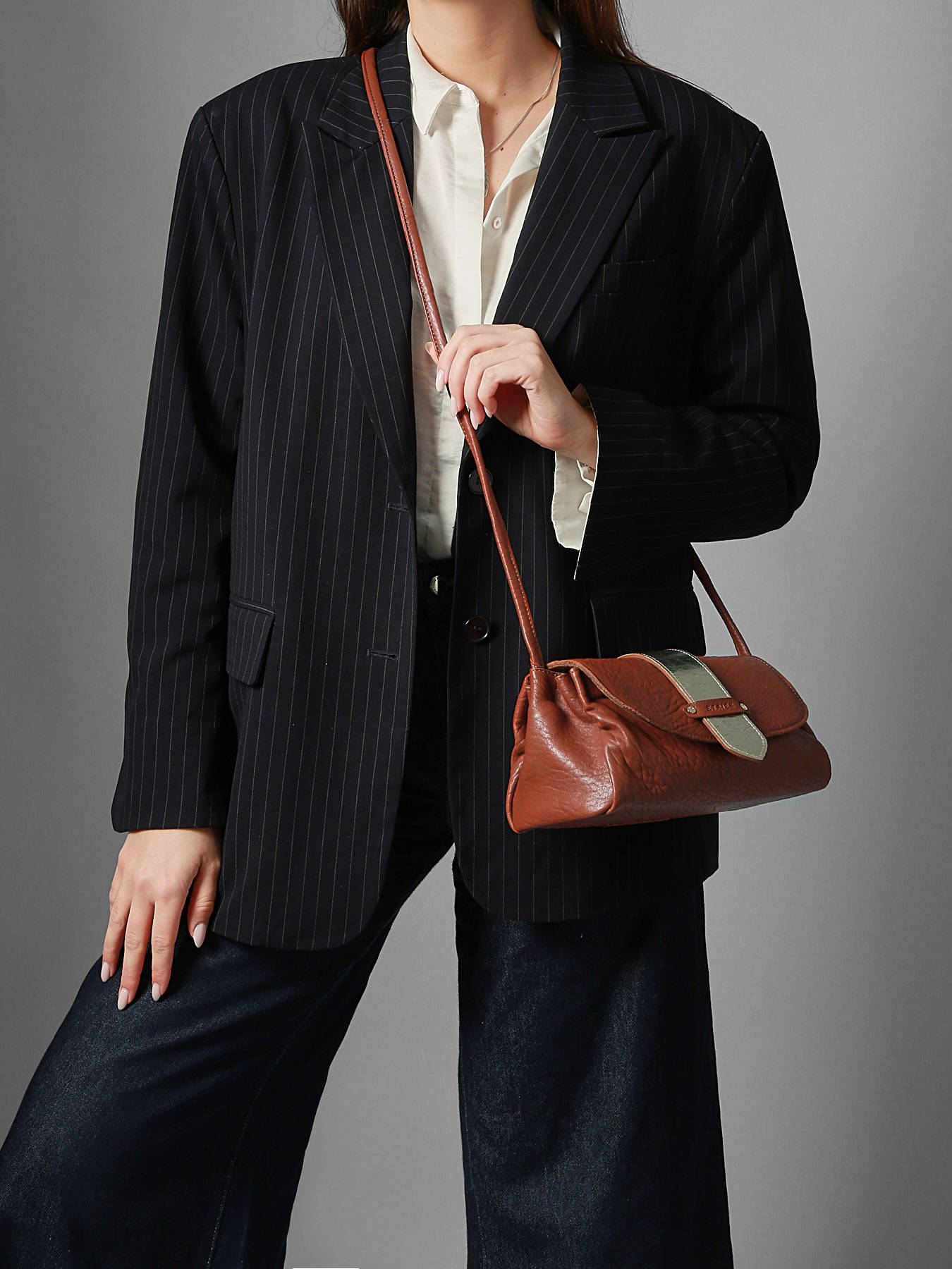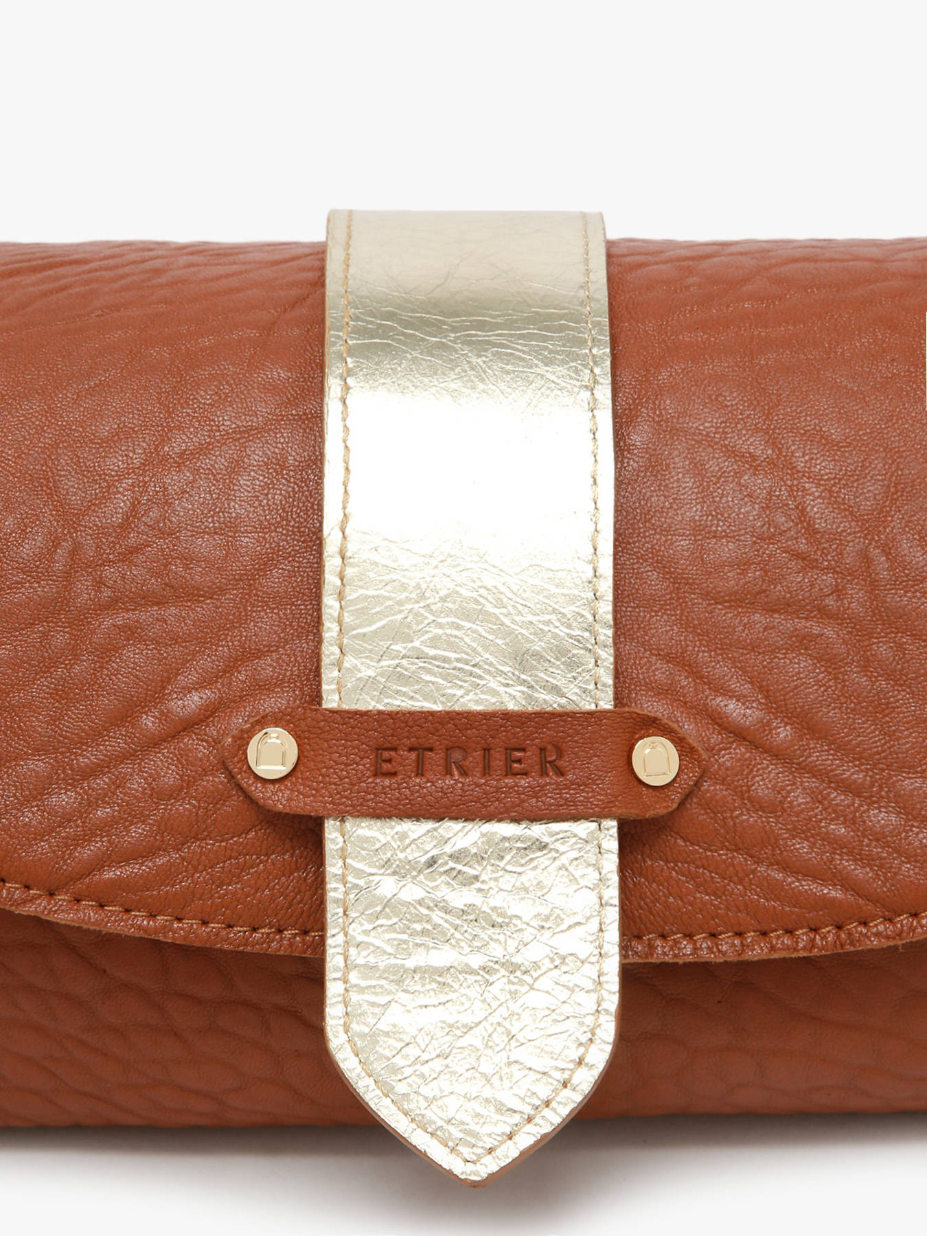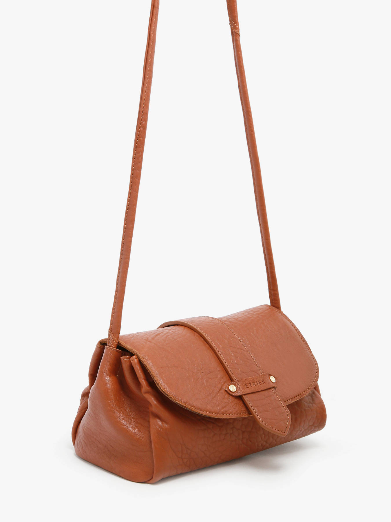 Le sac porté bandoulière AGNES par ETRIER est conçu en cuir de mouton crispé français. Ce modèle est présenté ici en taille M et se ferme par un rabat doté d'un bouton-pression aimanté. Il existe également en taille S pour celles et ceux qui souhaitent une contenance plus généreuse. Ce dernier est également agrémenté d'une languette réversible ; une face dorée et une face en cuir assortie au reste du sac, qui se fixe facilement grâce à deux boutons de col et se glisse dans une poche arrière prévue à cet effet.