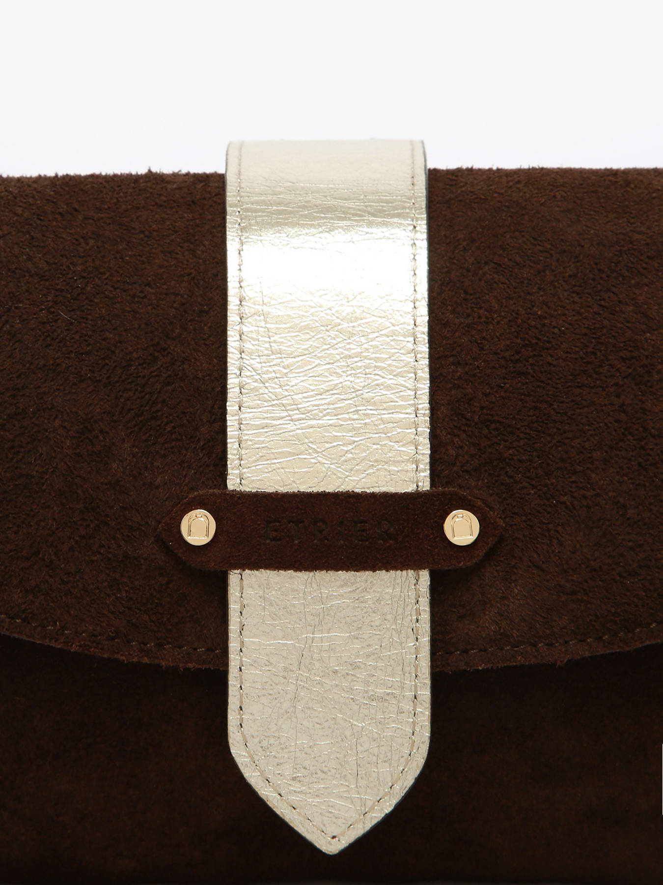 Le logo ETRIER, embossé sur du cuir naturel, est accompagné d'un petit drapeau français, symbole discret du savoir-faire artisanal.